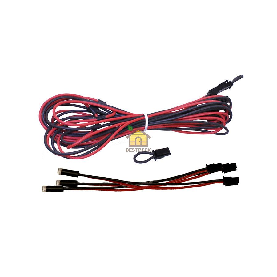 Блок питания позволяет диммирование с помощью кнопочного выключателя либо диммера DALI. Минимальное количество подключаемых светодиодов 3 шт. Возможно подключение дополнительных комплектов до 15 светодиодов. Внимание! Комплект не подходит если температура выше 90 ºC, а также если установлена дровянка. В этих случаях используйте оптоволоконное освещение. Для подсветки печки используйте опциональный набор с оптическим волокном.