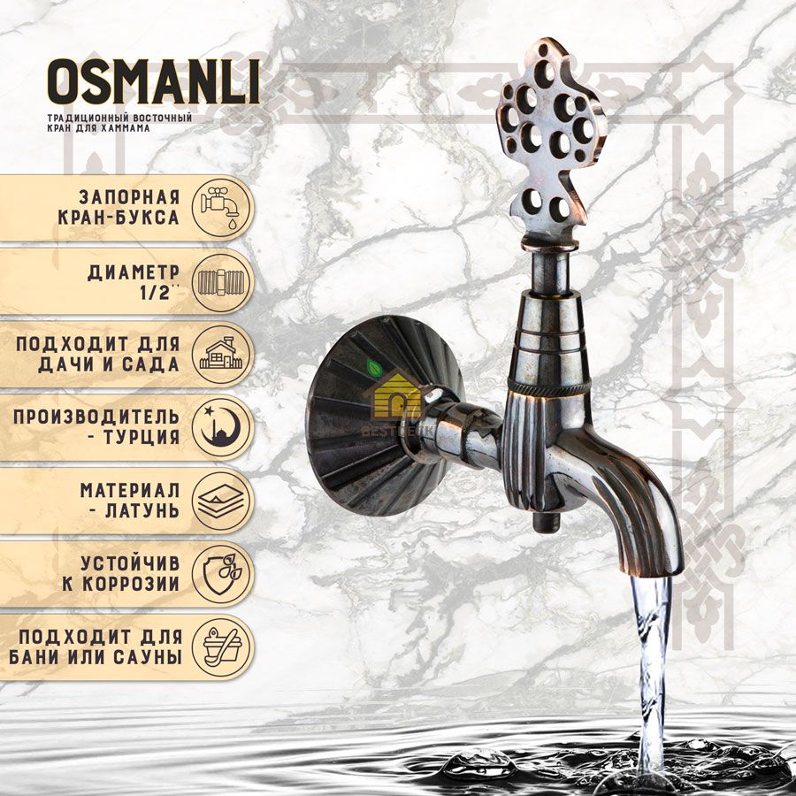 Кран латунный, цвет - Черненая медь (001-В)