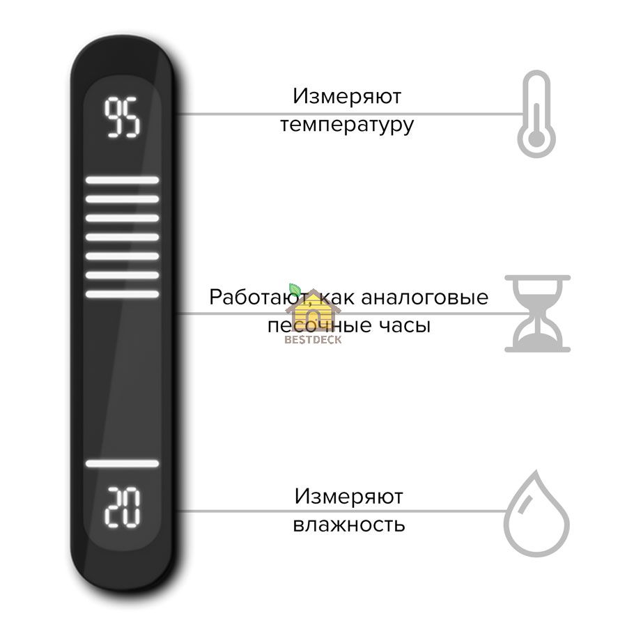 Встроенные датчики показывают температуру и влажность. Яркие светодиоды обеспечивают удобную читаемость даже в темноте.